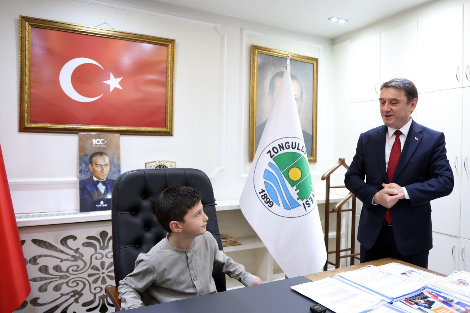 23 Nisan Ulusal Egemenlik ve Çocuk Bayramı nedeniyle Belediye Başkanımız Sayın Tahsin Erdem başkanlık koltuğunu Dumlupınar İlkokulu 4-A sınıfı öğrencilerinden Osman Tunç Şehit’e devretti.