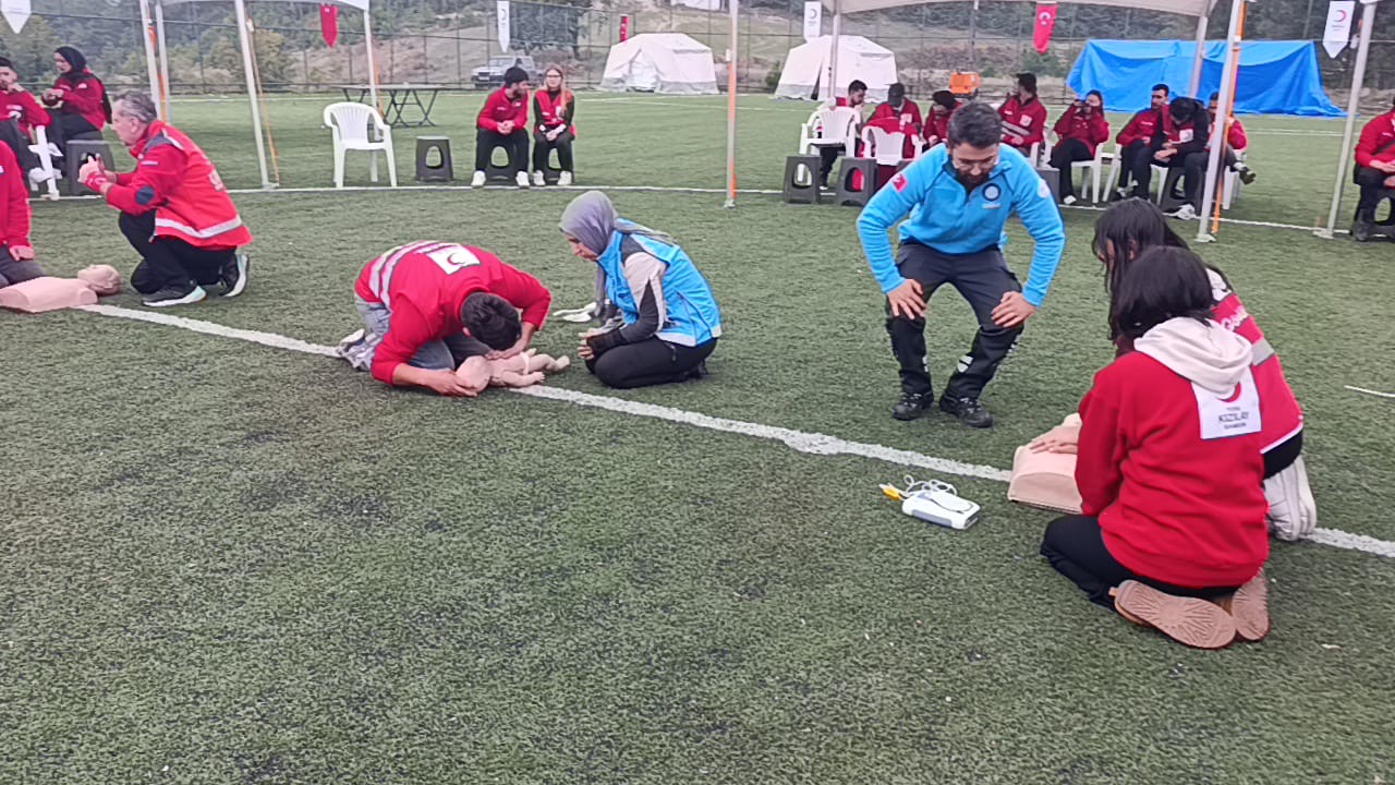 Katılımcılara arama kurtarma, çadır kurma, ilk yardım, afet bilinci ve yangına müdahale gibi konularda kapsamlı teorik ve uygulamalı eğitimler veriliyor.