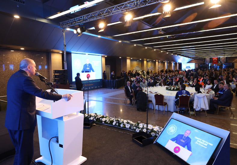 İstanbul’da bulunan Haliç Kongre Merkezi’nde düzenlenen Türkiye Yüzyılı’nın Emekçileri İftar Programı’na Türkiye’nin birçok kentinden işçi ve emekçiler davet edildi. GMİS Genel Başkanı Hakan Yeşil ve Genel Sekreter Yener Arslanbuğa, maden işçileriyle birlikte iftar programına katılarak Cumhurbaşkanı Recep Tayyip Erdoğan ve TÜRK-İŞ Genel Başkanı Ergün Atalay ile bir araya geldi. Cumhurbaşkanı Erdoğan, tüm işçilerin ve emekçilerin Ramazan ayını tebrik ederek, mübarek ayın İslam âlemine ve tüm insanlığa hayırlar getirmesini niyaz ettiğini, kardeşliğin, dayanışmanın ve birliğin sembolü olan bu bereketli iftar sofrasında emekçilerle beraber olmanın bahtiyarlığı içinde olduğunu dile getirdi.
