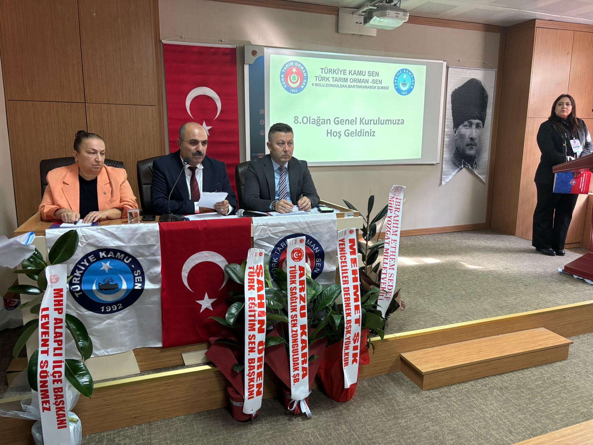 Türkiye Kamu-Sen’e bağlı Türk Tarım Orman Sen 6 Nolu Zonguldak-Karabük-Bartın Şubesi’nin 8. Olağan Genel Kurulu, cumartesi günü Zonguldak Orman Bölge Müdürlüğü’nde yoğun katılımla gerçekleştirildi.